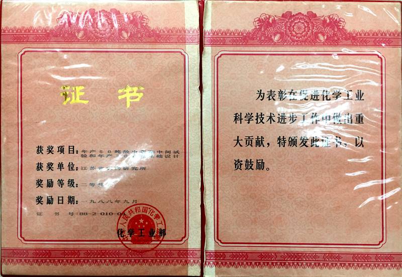 1989.9國(guó)家“七五”科技攻關(guān)項(xiàng)目“胺菊酯技術(shù)改造”