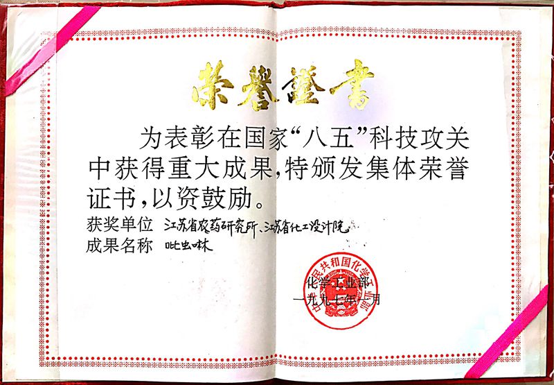 1997.1化工部國(guó)家“八五”科技攻關(guān)項(xiàng)目“吡蟲(chóng)啉”