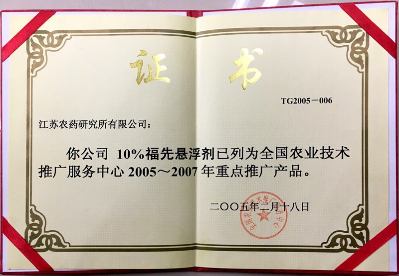 2005“呋喃蟲(chóng)酰肼”被列為全國(guó)農(nóng)技推廣中心重點(diǎn)推廣產(chǎn)品