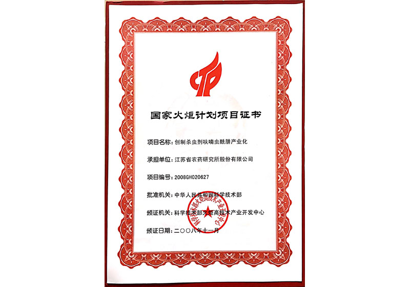 2008“呋喃蟲(chóng)酰肼產(chǎn)業(yè)化”入選“國(guó)家火炬計(jì)劃”
