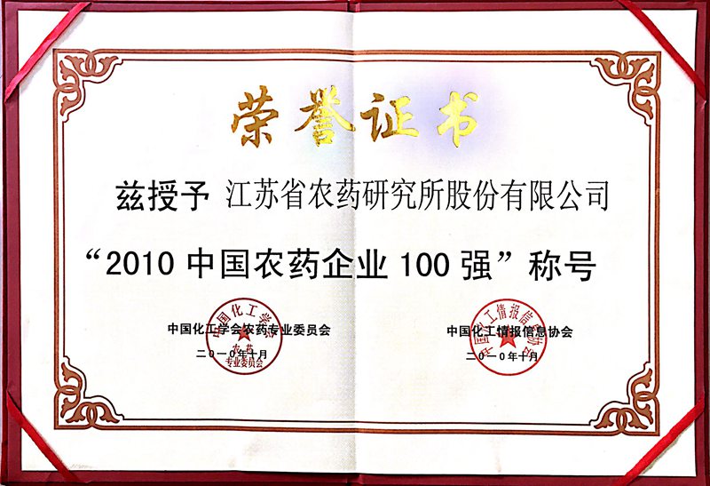 2010.中國(guó)化工協(xié)會(huì)“中國(guó)農(nóng)藥100強(qiáng)”