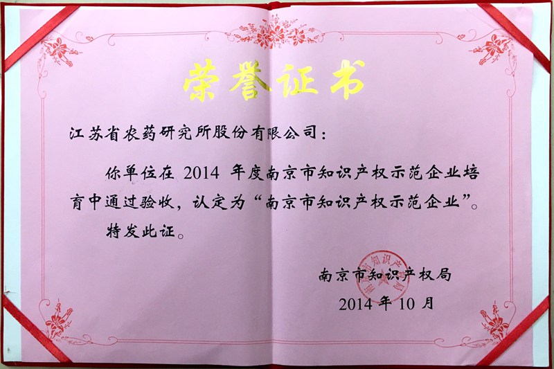 2014.10南京市知識(shí)產(chǎn)權(quán)示范企業(yè)